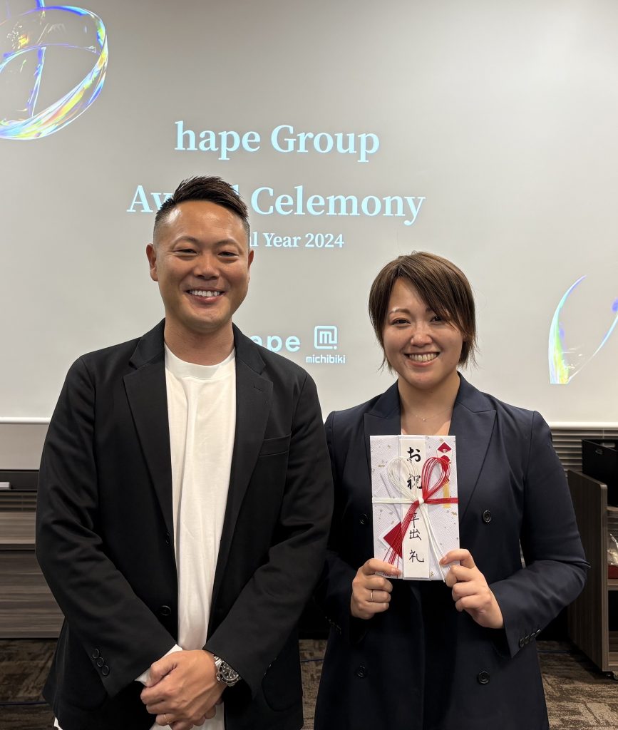 業績面・組織貢献の両方からhapeを力強く牽引してくださいました!